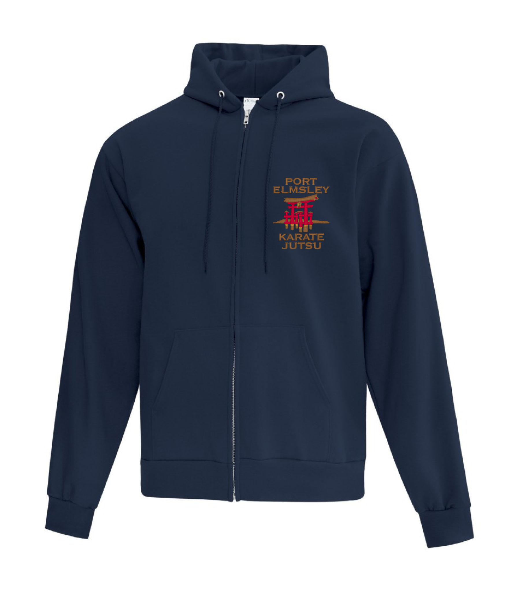 Comes with the Port Elmsley Martial Arts logo embroidered on the front left chest of the hoodie.