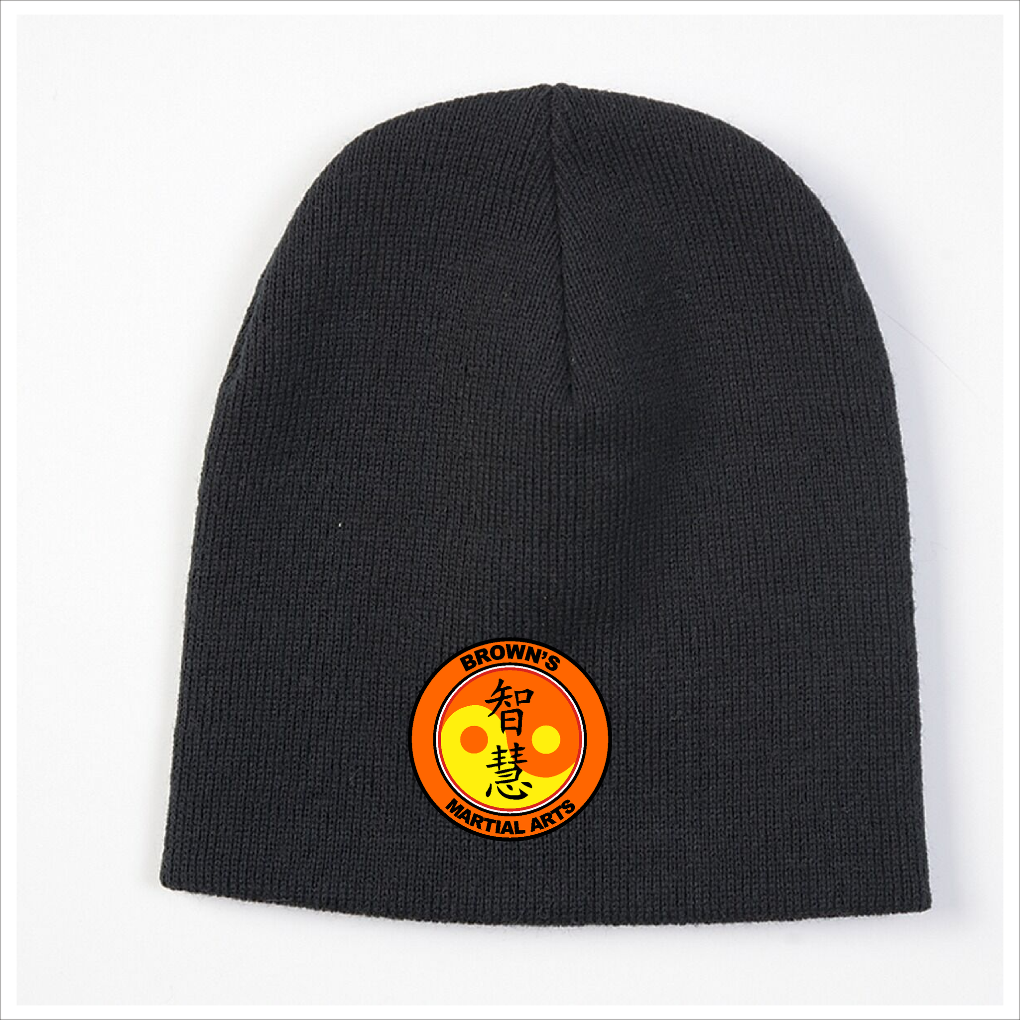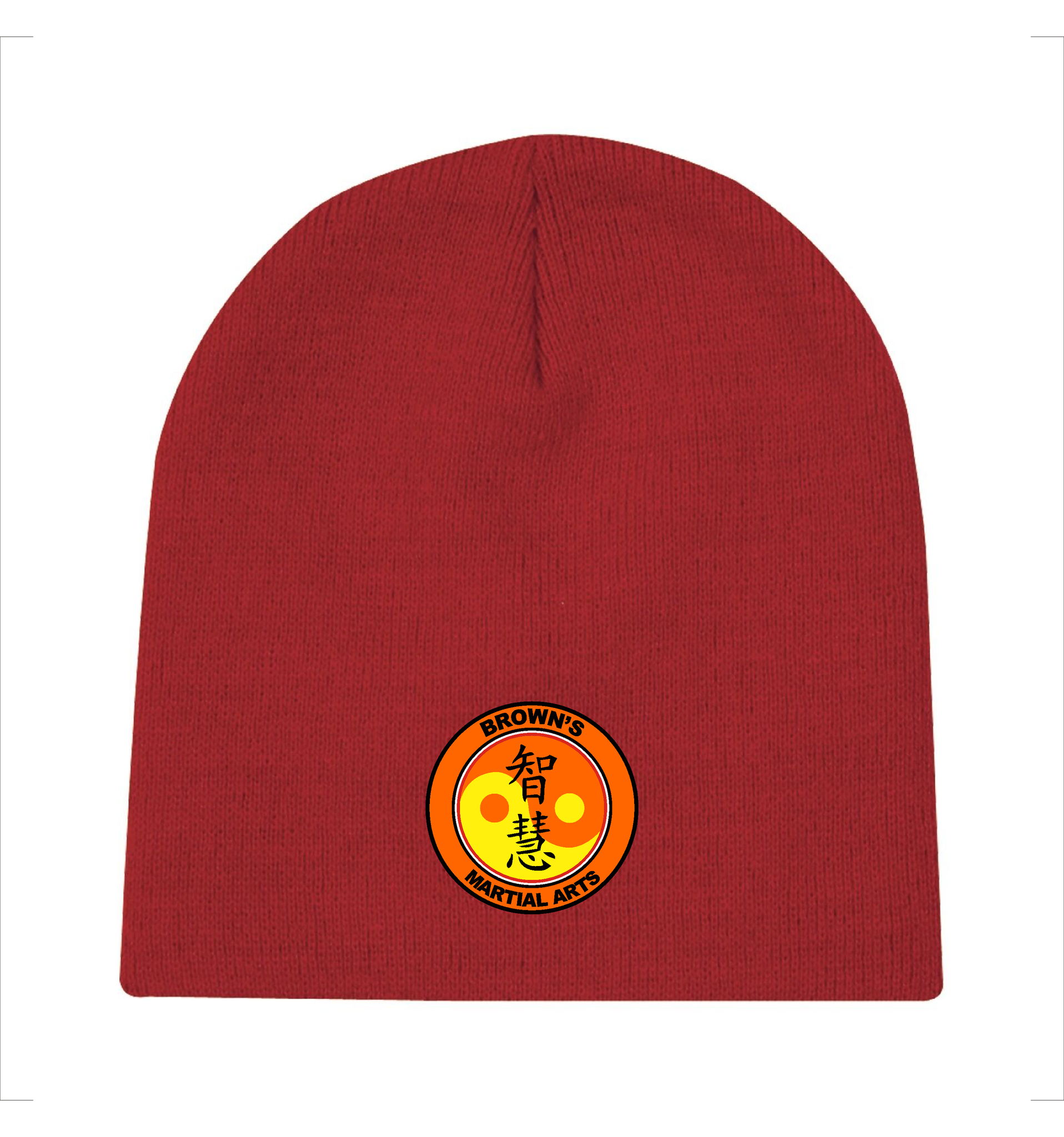Comes with the Brown's Martial Arts logo embroidered on front of the beanie.