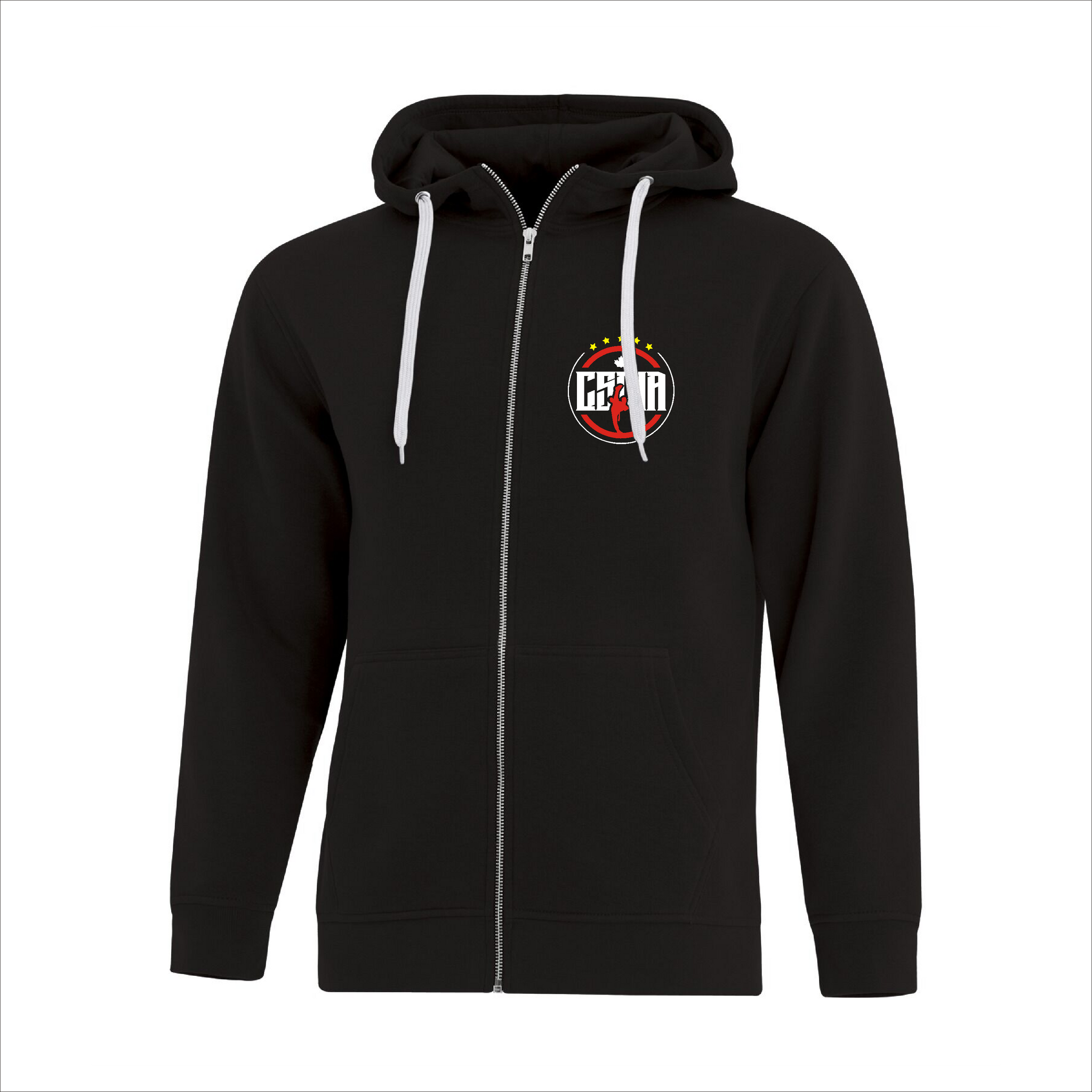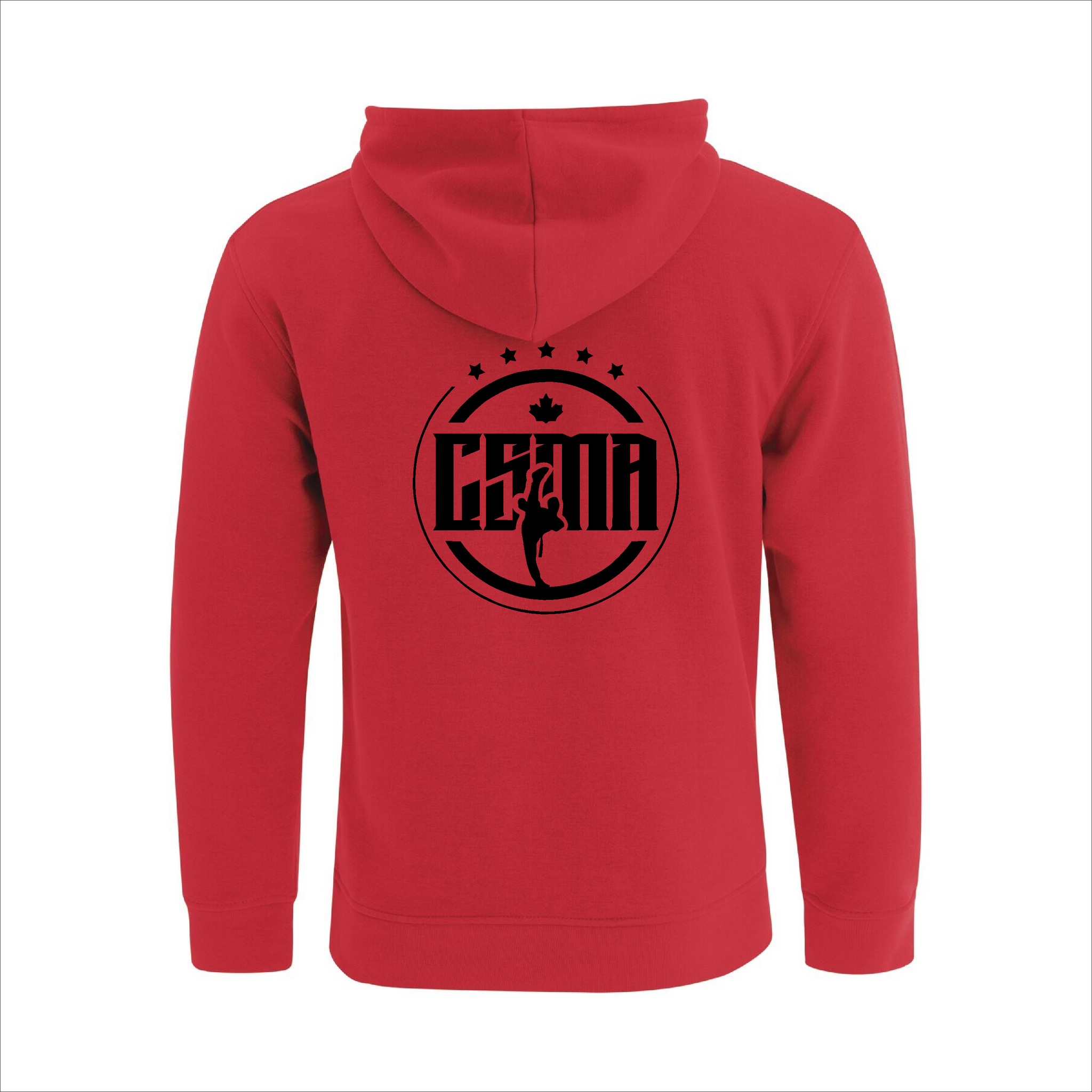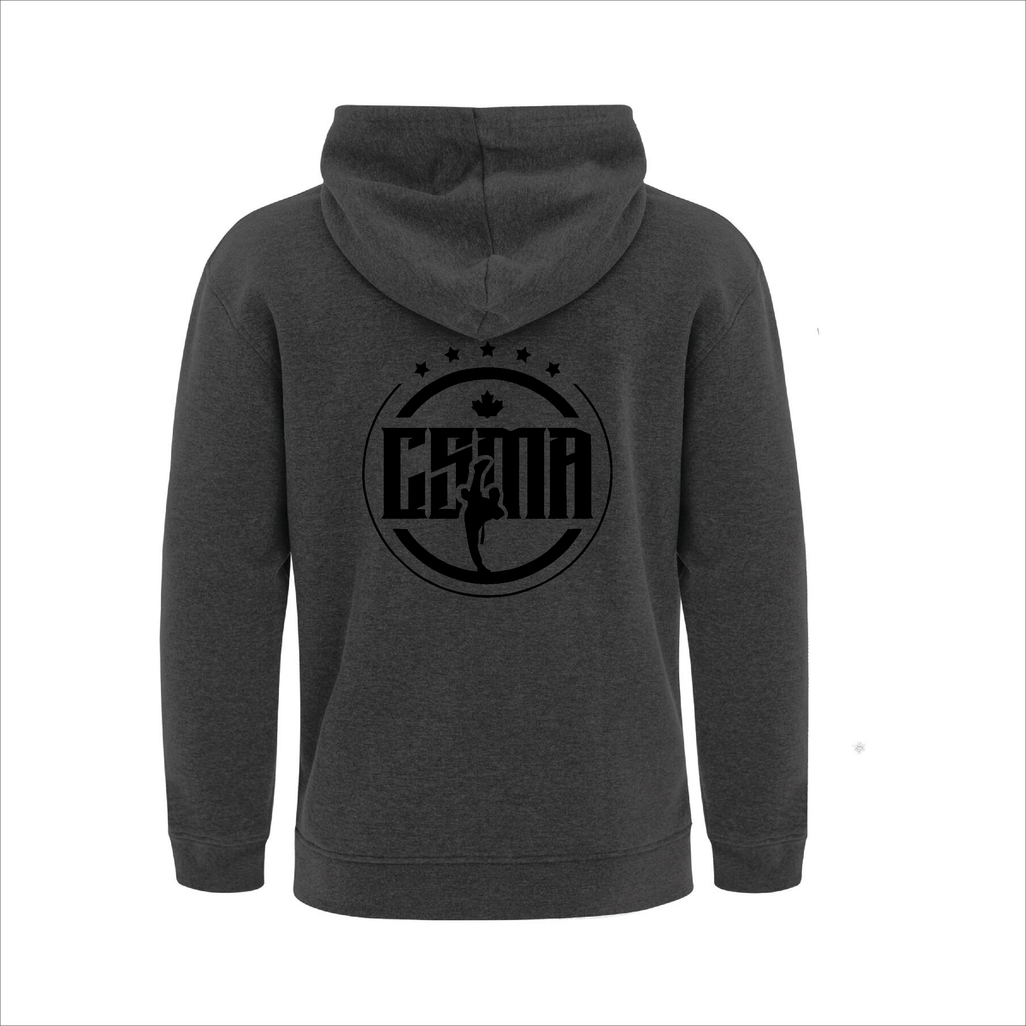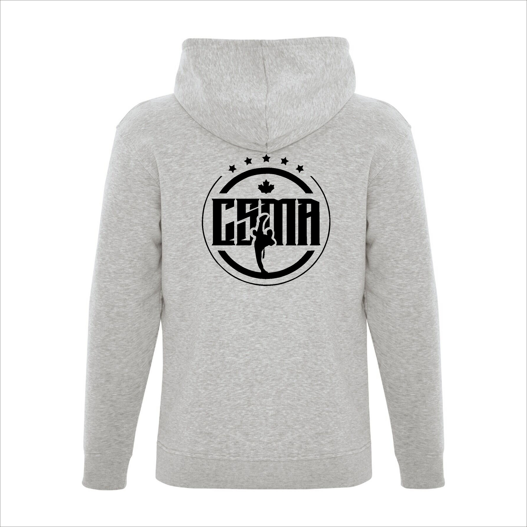 Comes with the CSMA logo printed on the front left chest and full size on the back of the hoodie.
