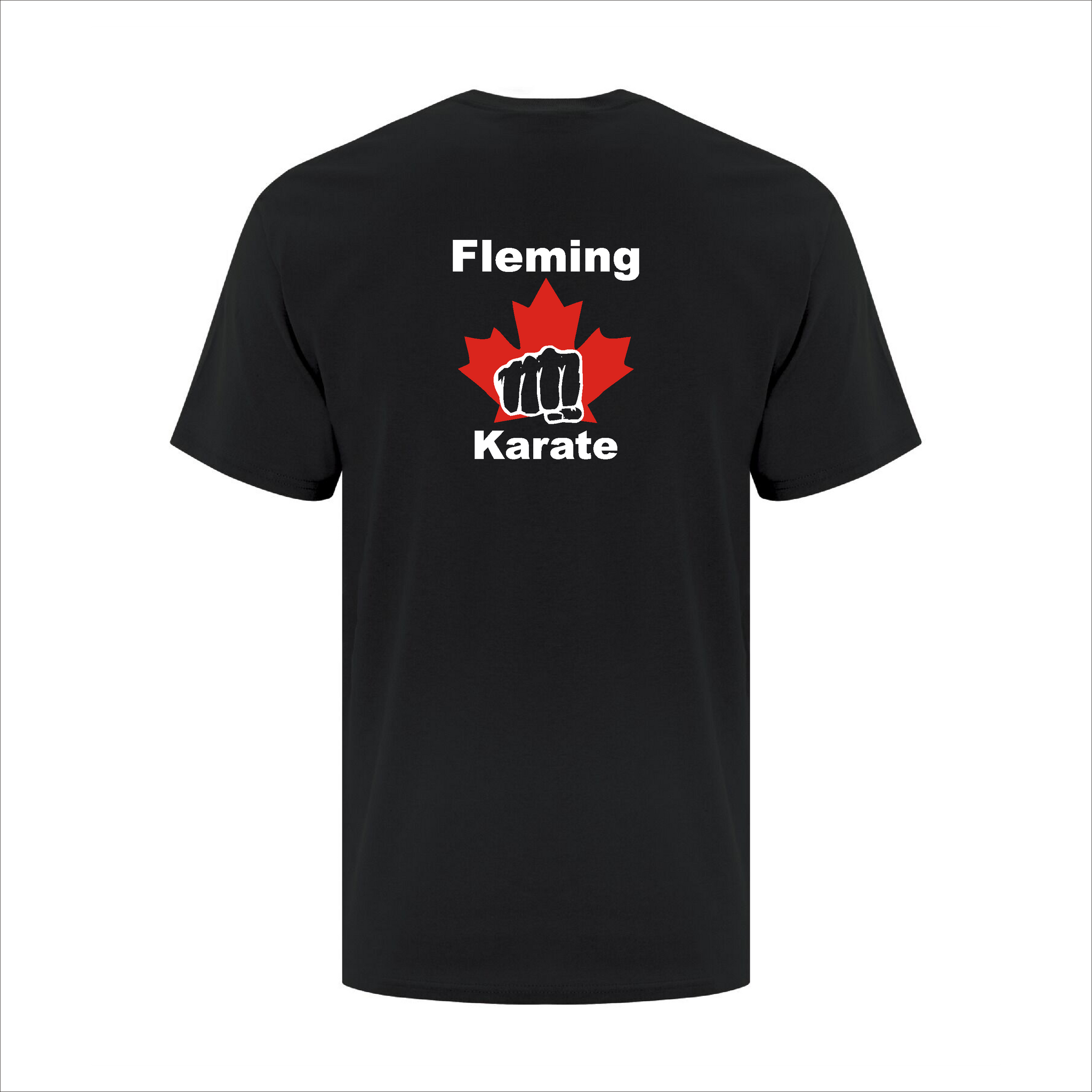 Comes with the Fleming Karate Club logo printed on the front of the shirt and the Fleming Karate logo printed on the back.Available in sizes Small - XXXX-Large.