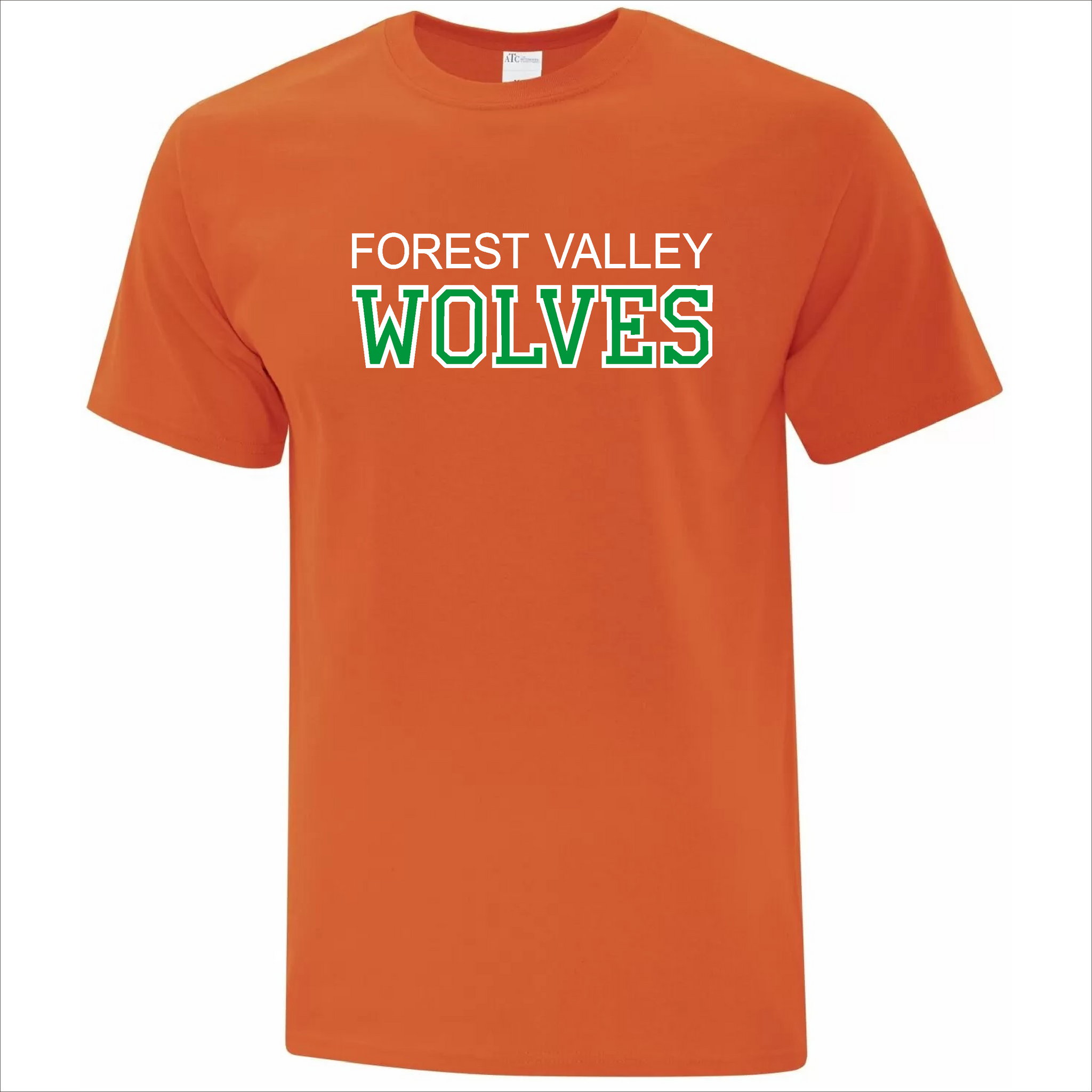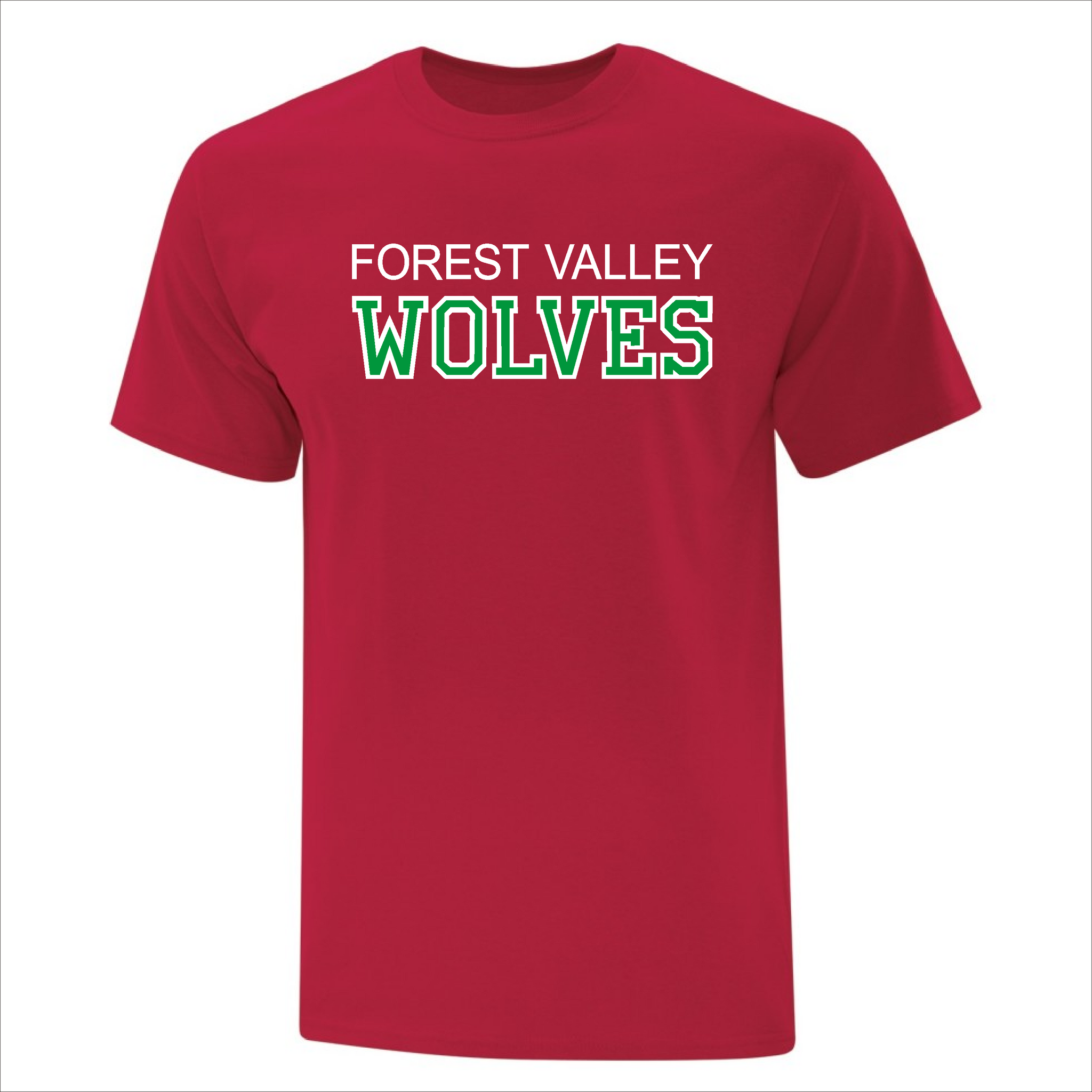Comes with the Forest Valley Wolves logo printed on the front of the shirt.