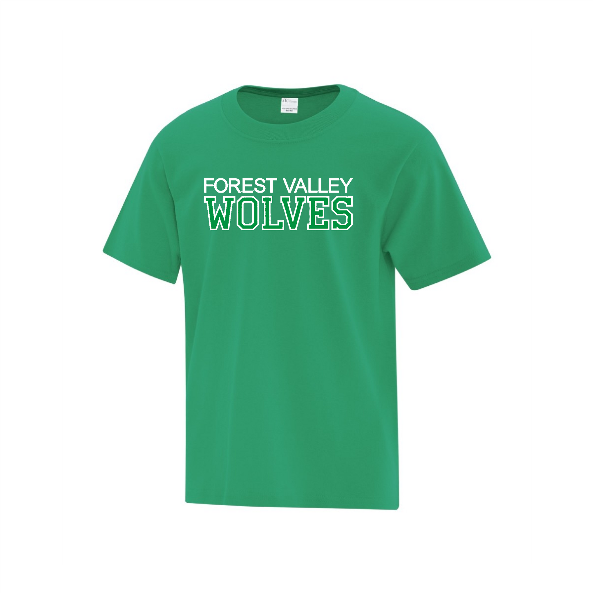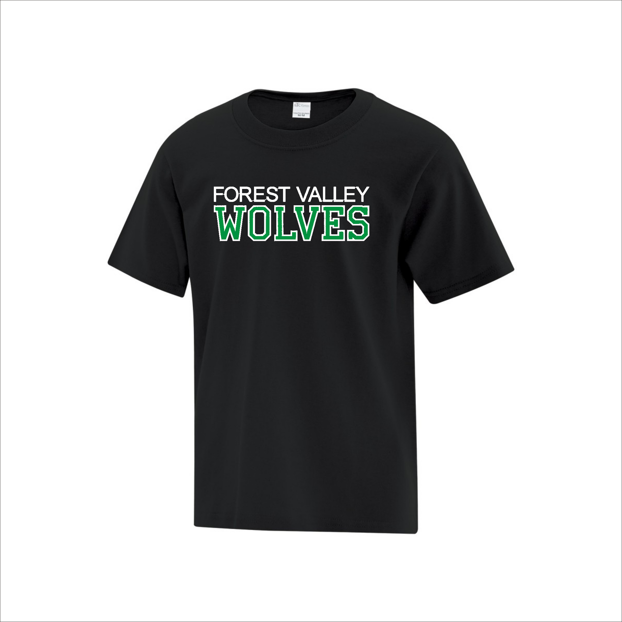 Comes with the Forest Valley Wolves logo printed across the front of the shirt.