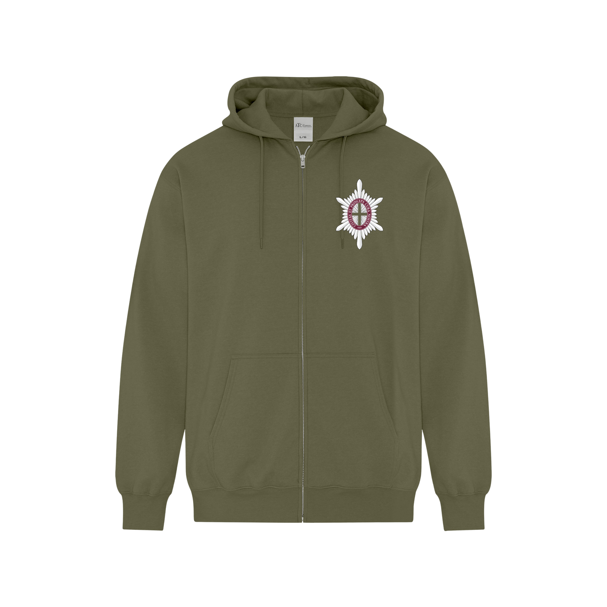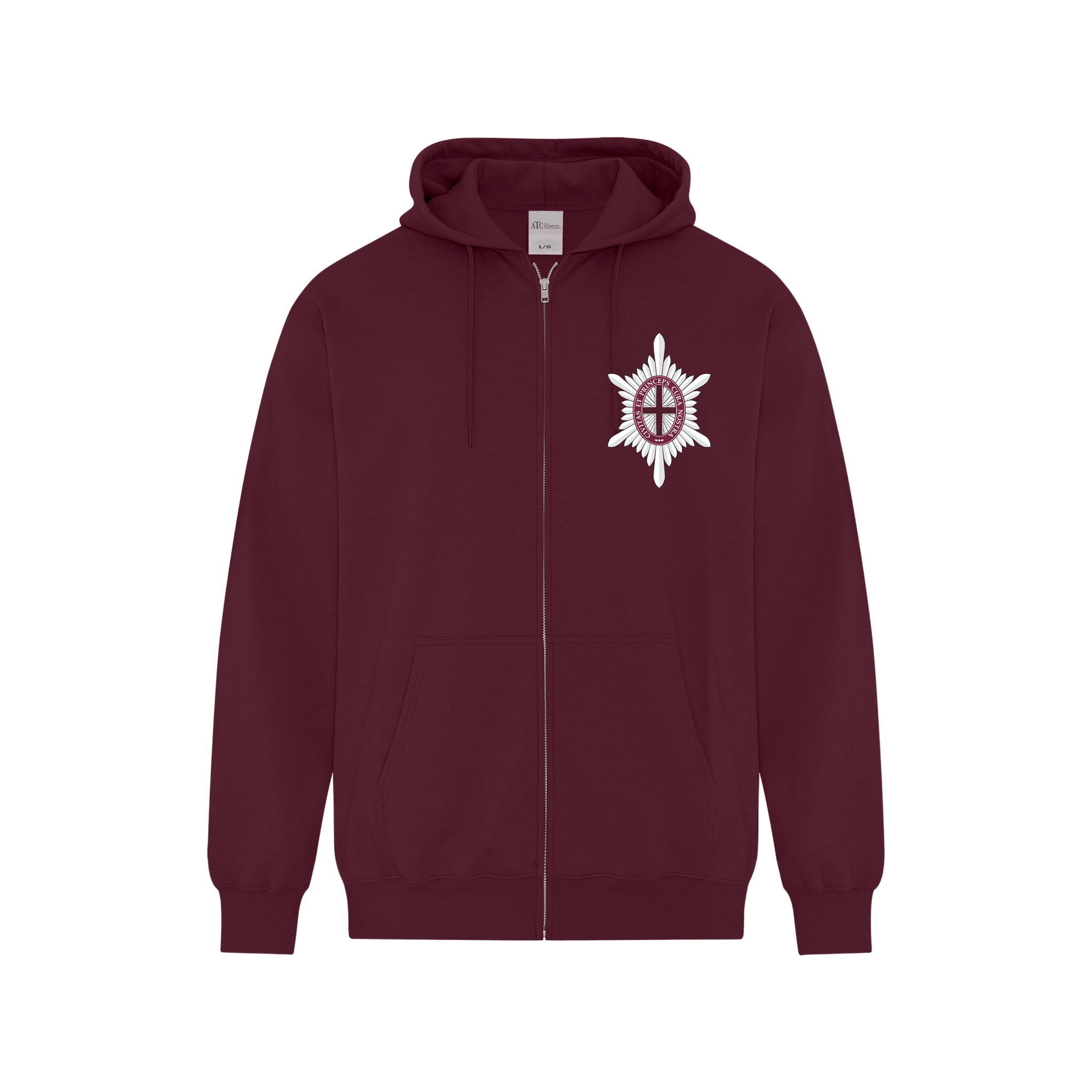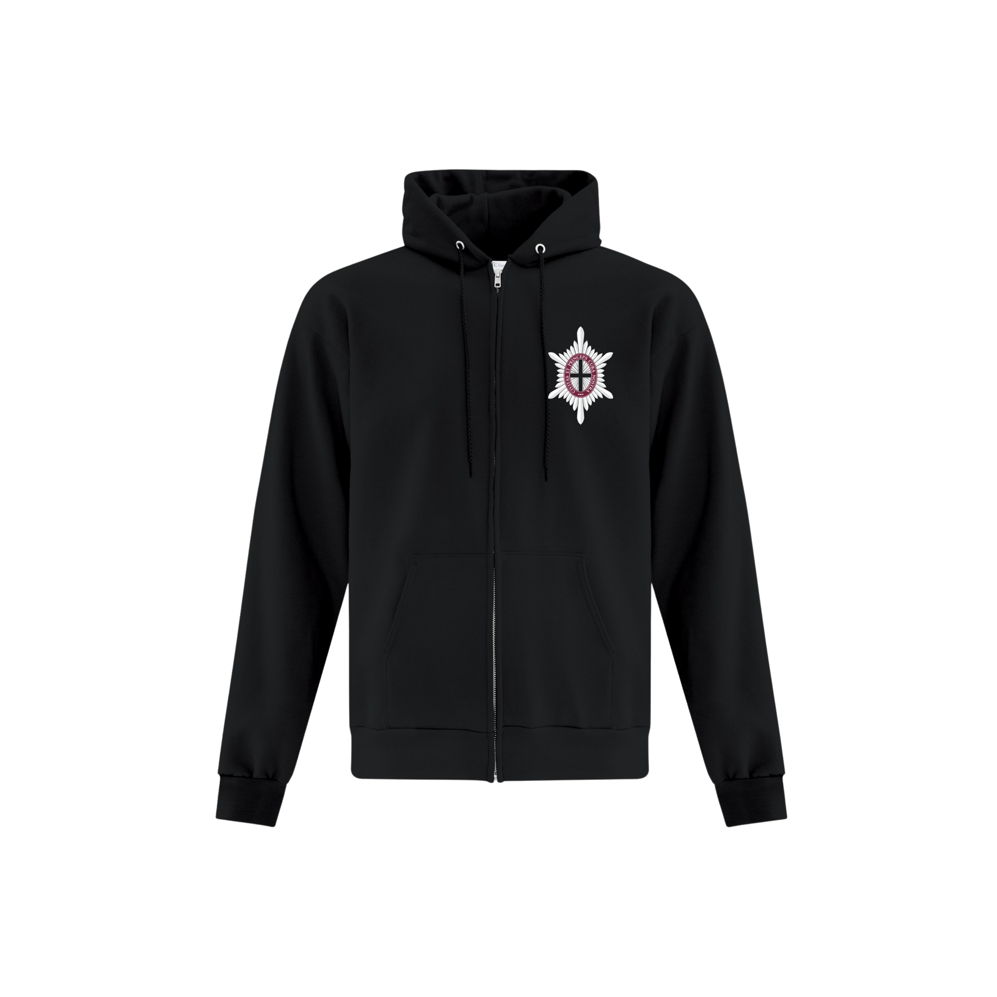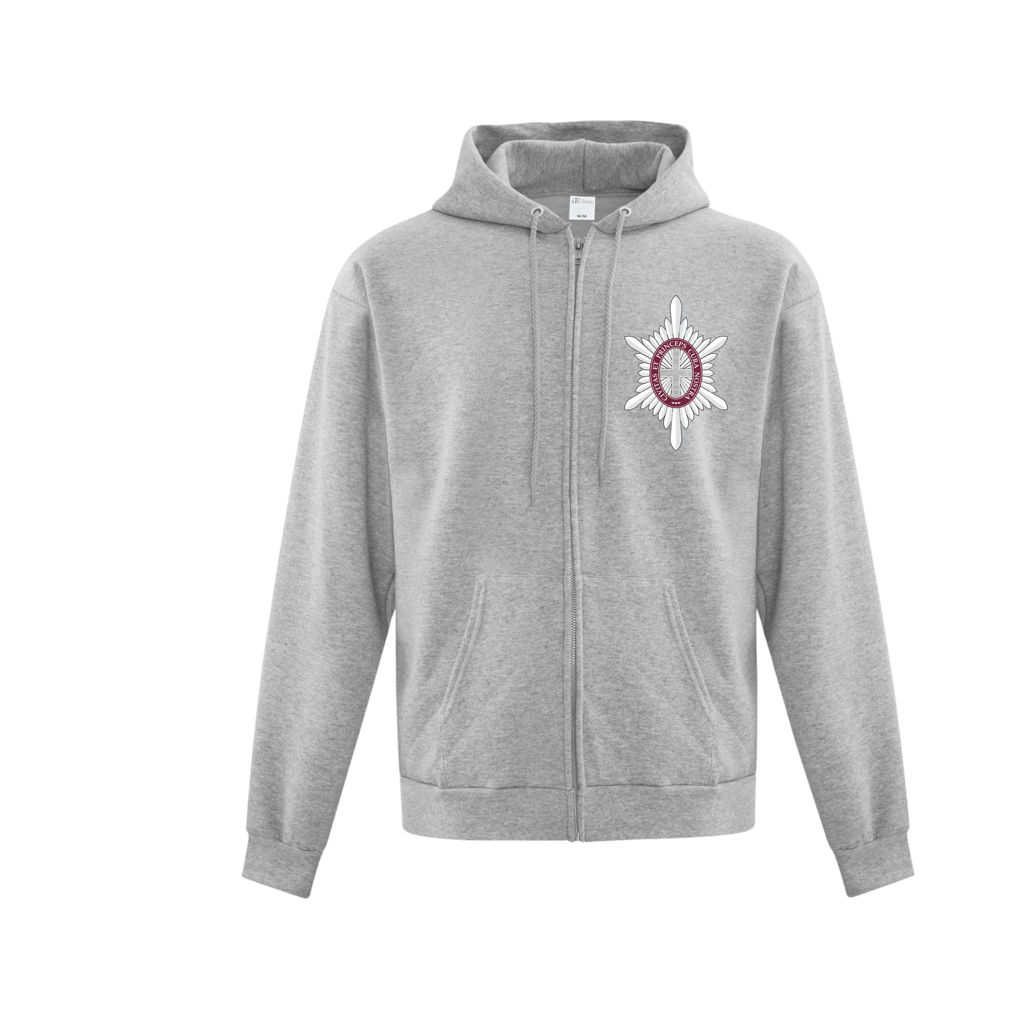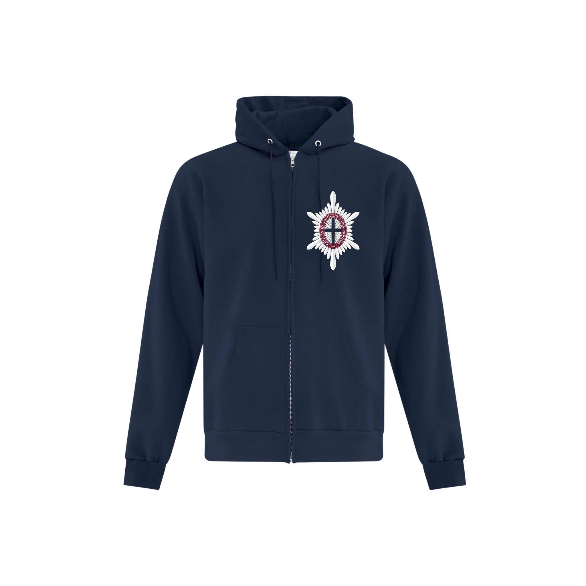 Adult Hooded Full ZIp Sweatshirt - unisex. Made with a 13-oz. 50/50 cotton/polyester fleece blend. Features a double lined hood with adjustable drawstring.