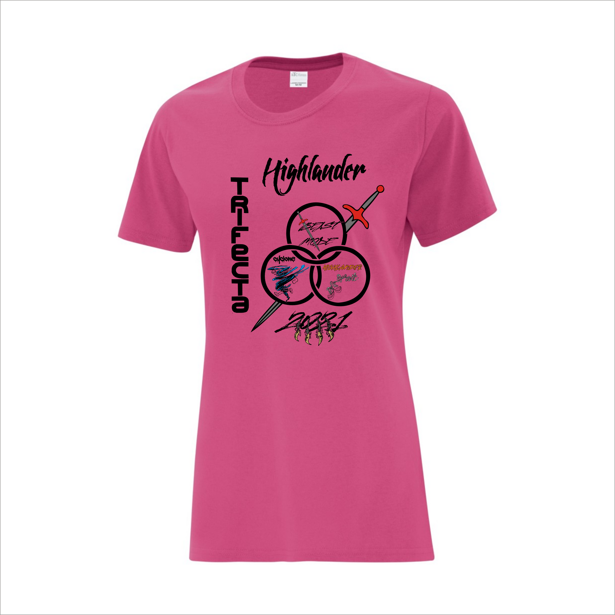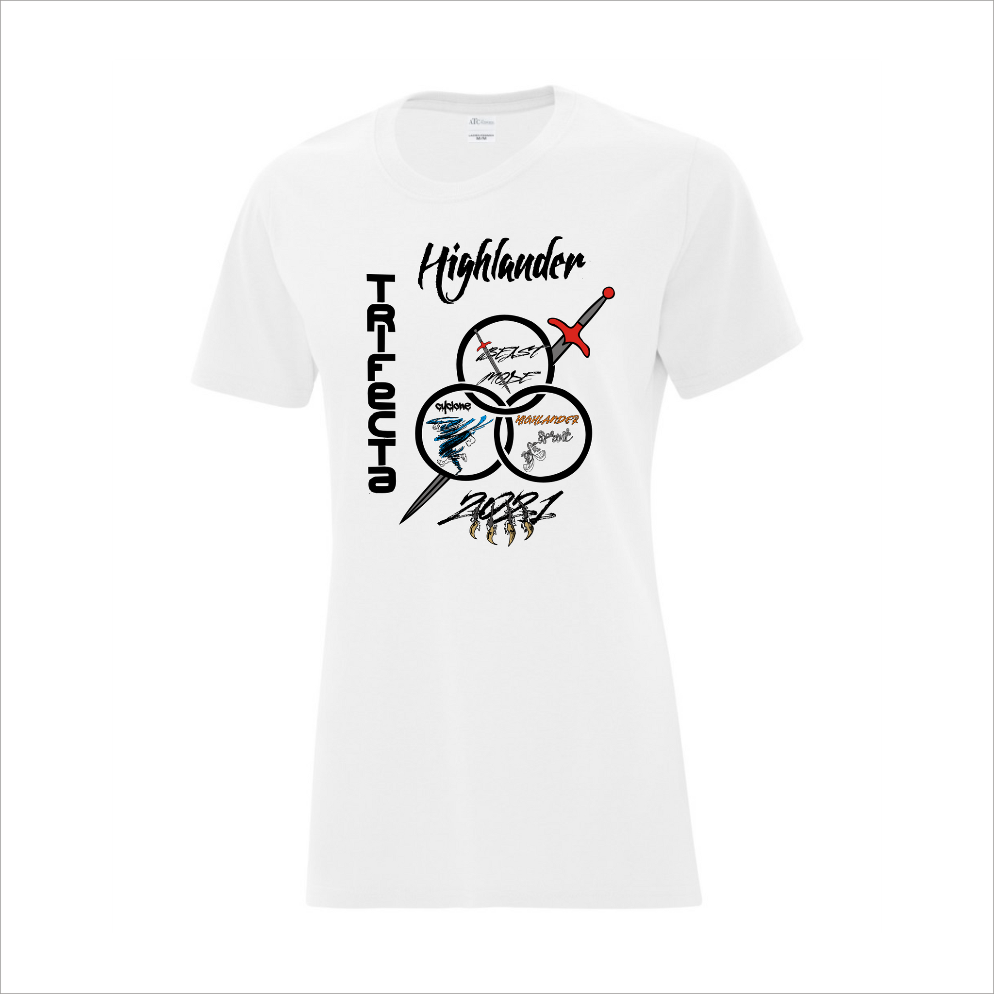 Comes with the Highlander Trifecta logo printed on the front of the shirt.