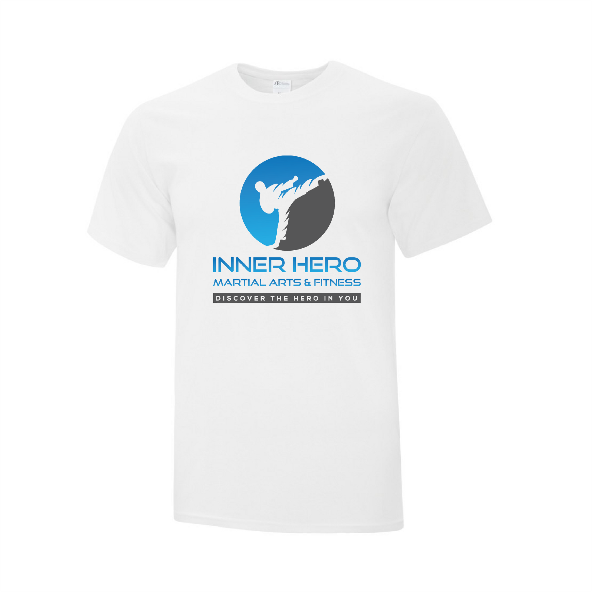 Comes with the Inner Hero Martial Arts logo printed on the front of the shirt and the slogan printed on the back.