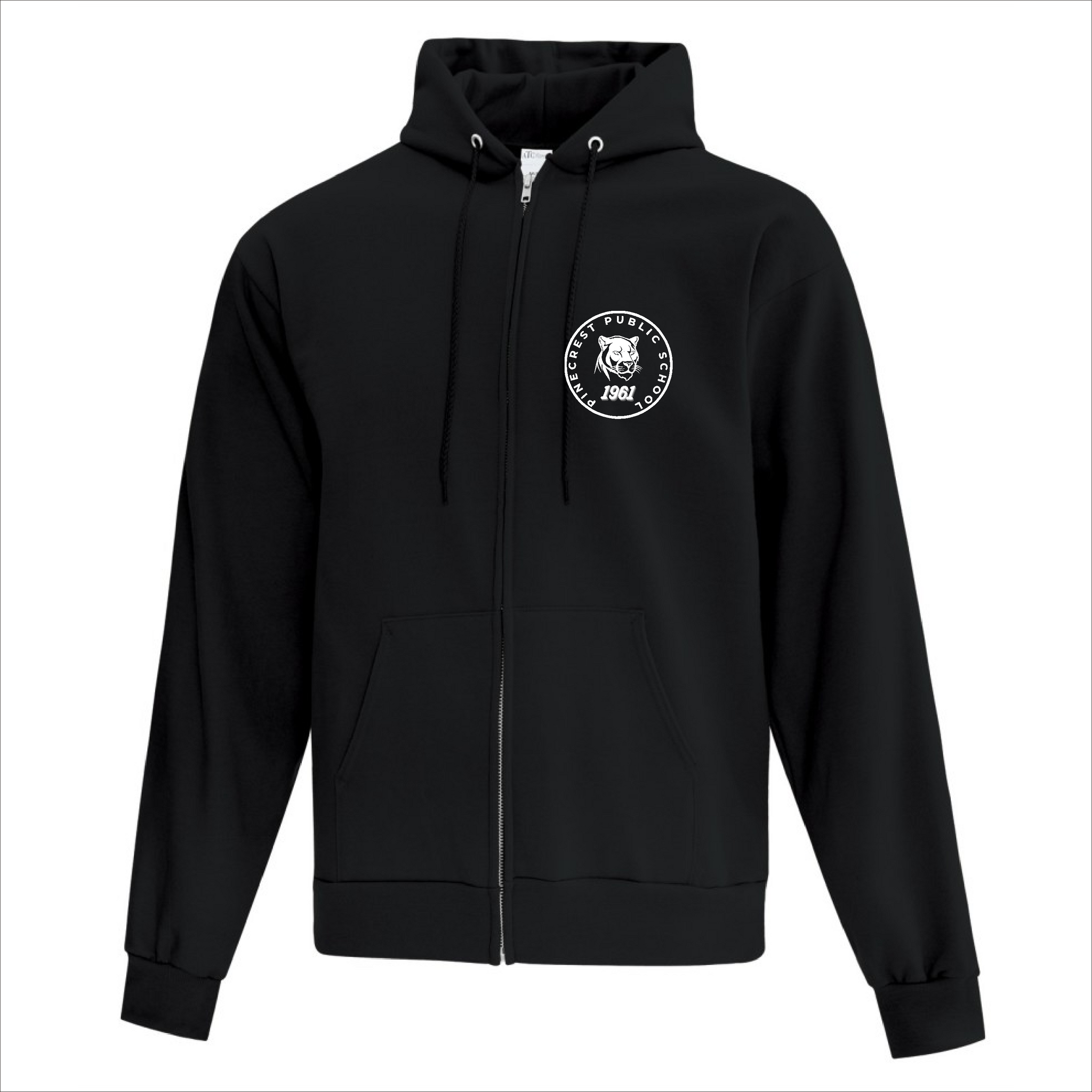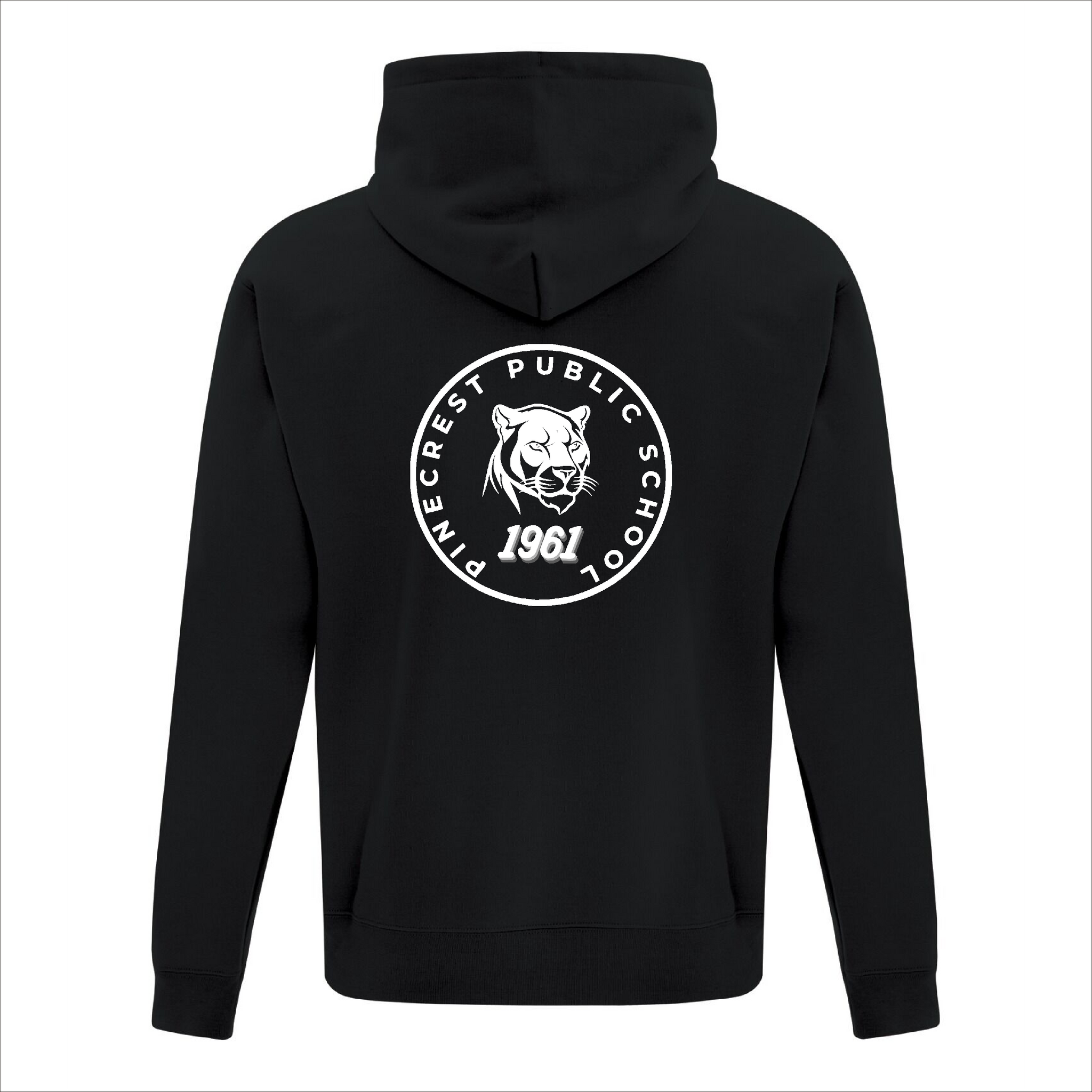 Comes with the Pinecrest Public School logo printed on the front left chest of the hoodie and printed large on the back of the hoodie.