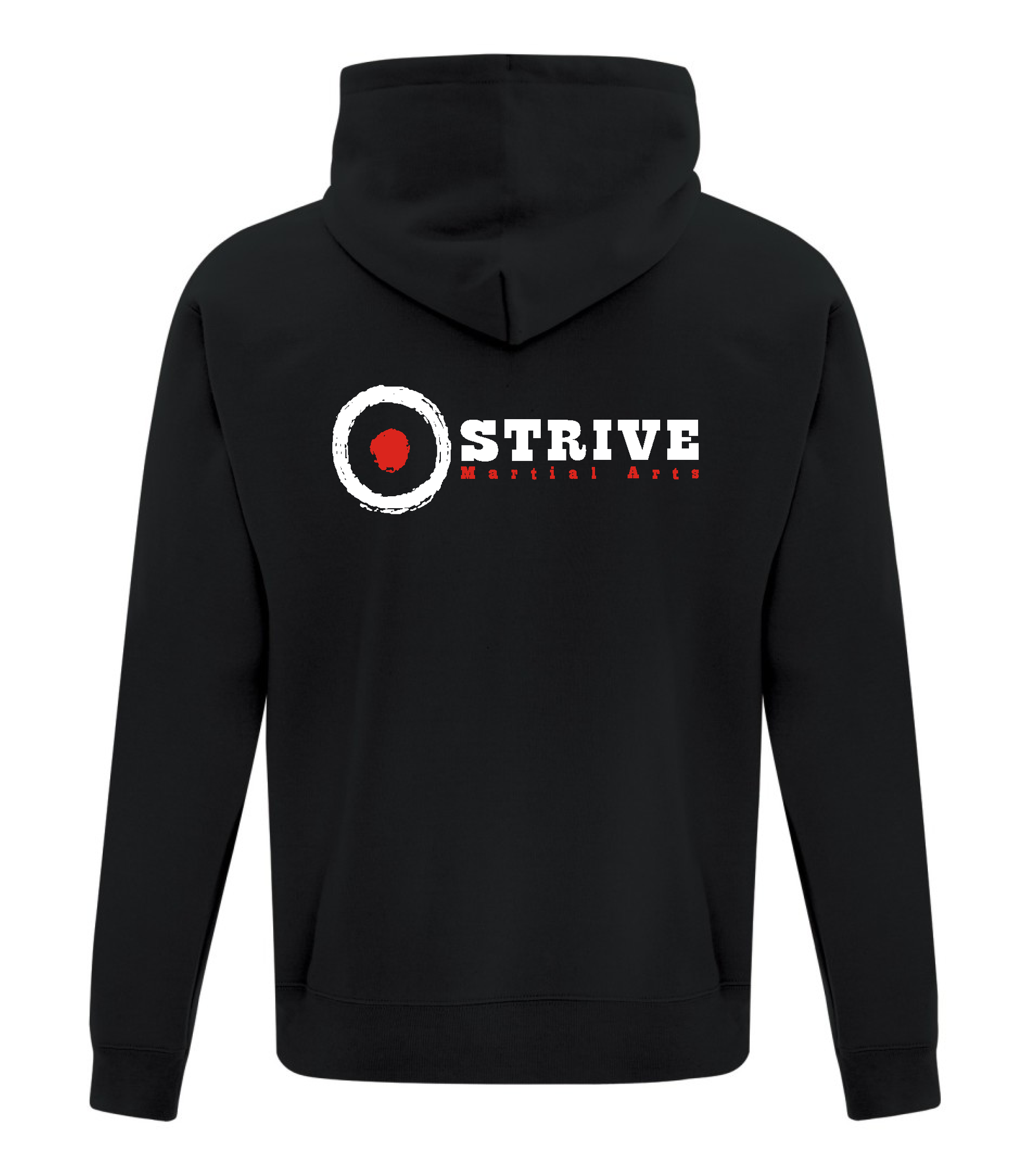 Comes with the small Strive Martial Arts logo embroidered on the front left chest of the hoodie and the large logo embroidered on the back.