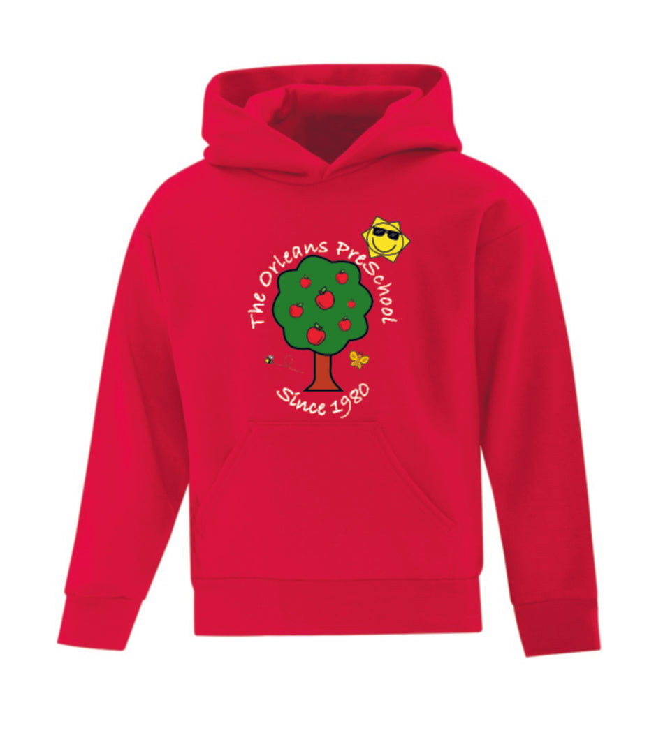 Comes with the Orleans Pre-School logo embroidered on the front of the hoodie.