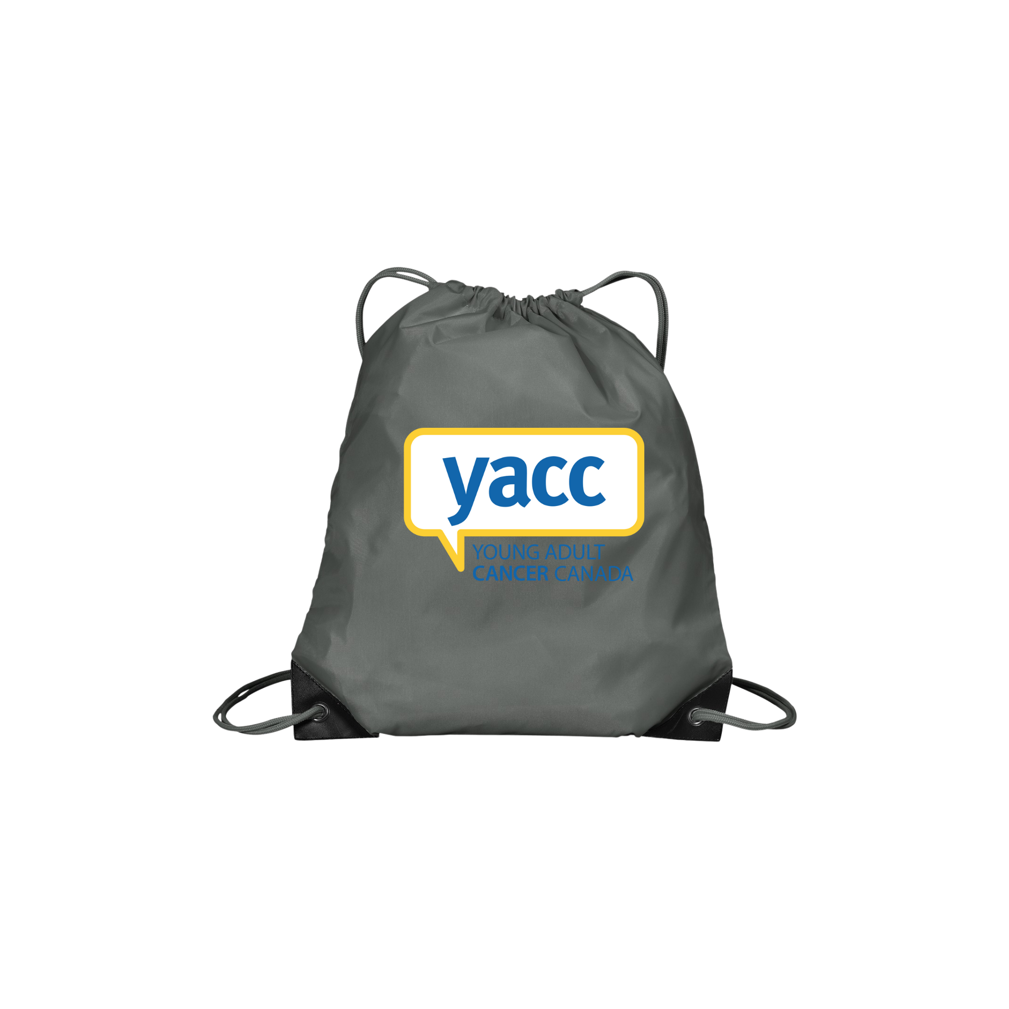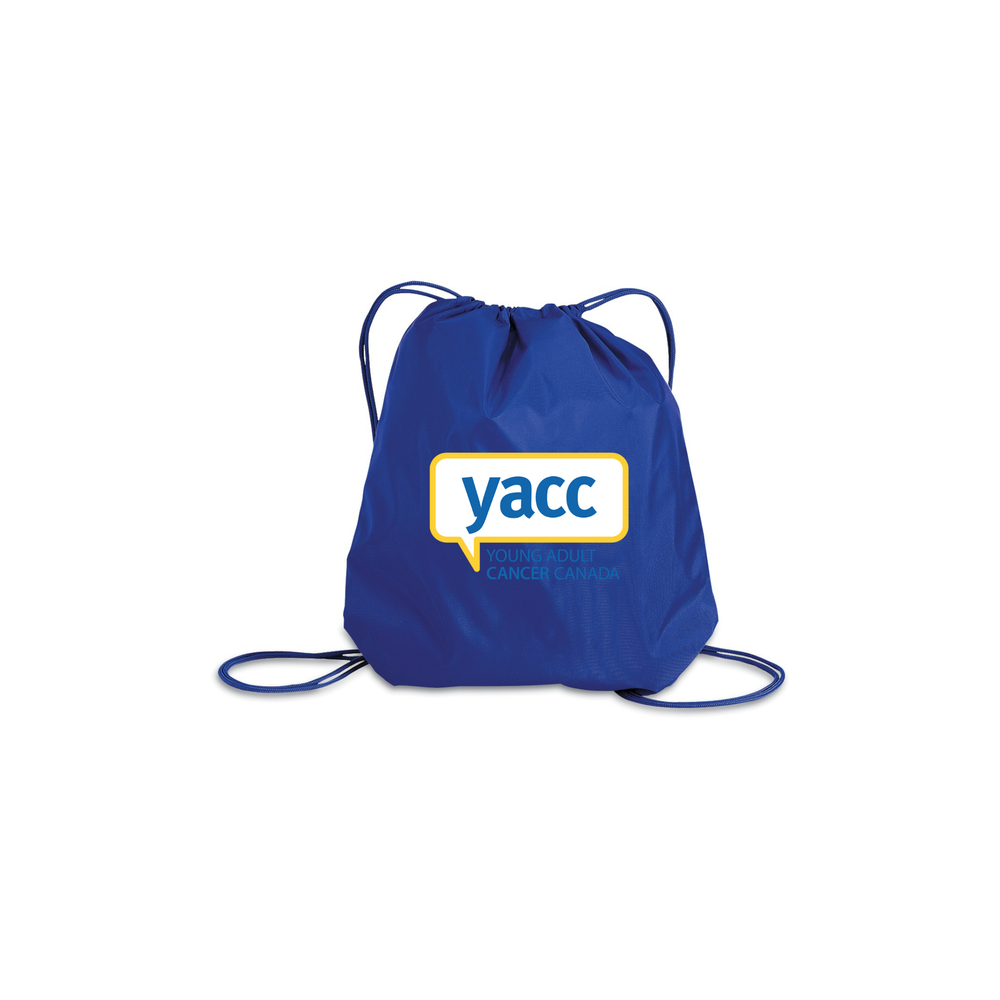 Cinch Bag, made with 100% oxford nylon. Bag is approximately 16.5" high x 14.5" wide.