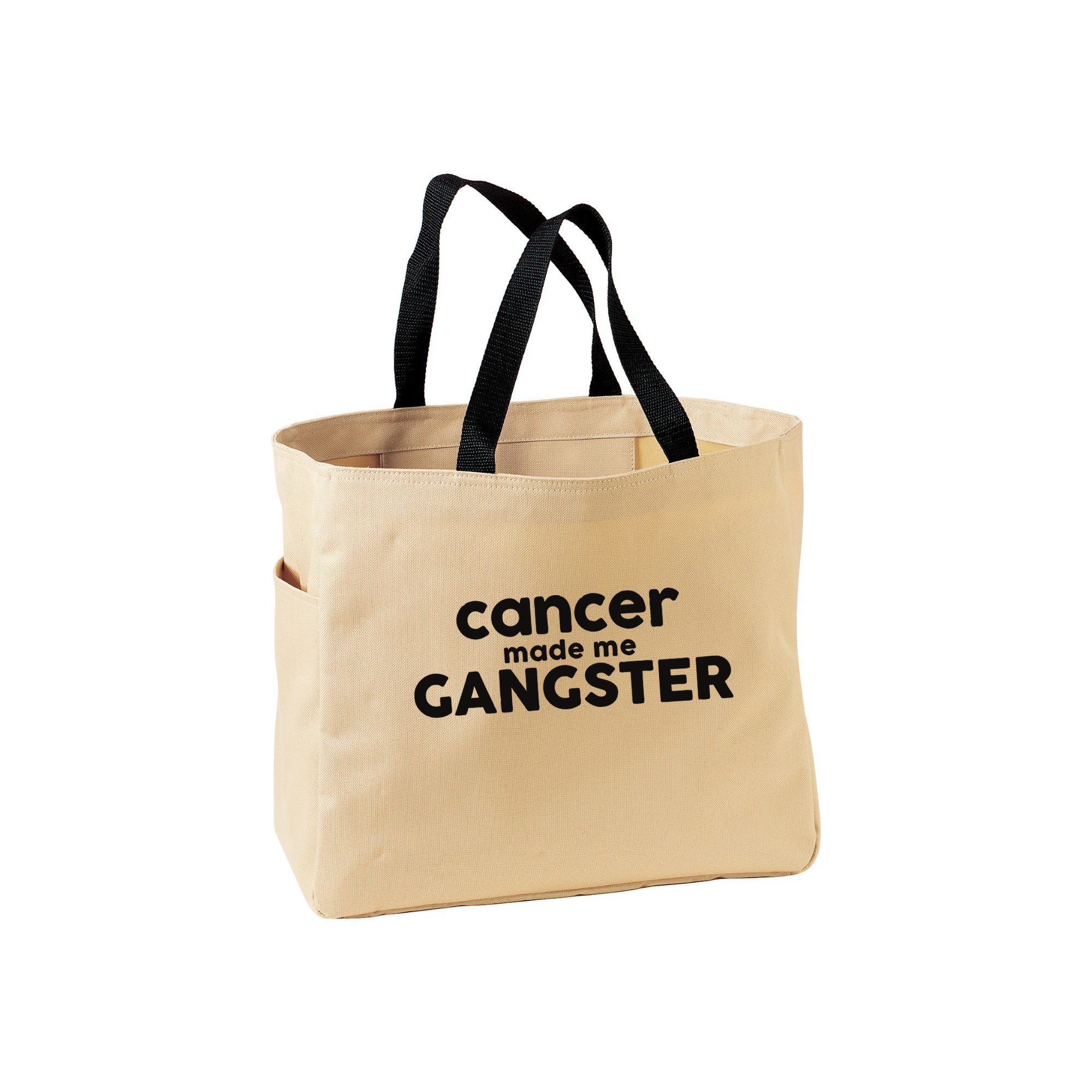 Tote bag. 100% Polyester with side pocket. 12” high x 14” wide x 6.5” deep.